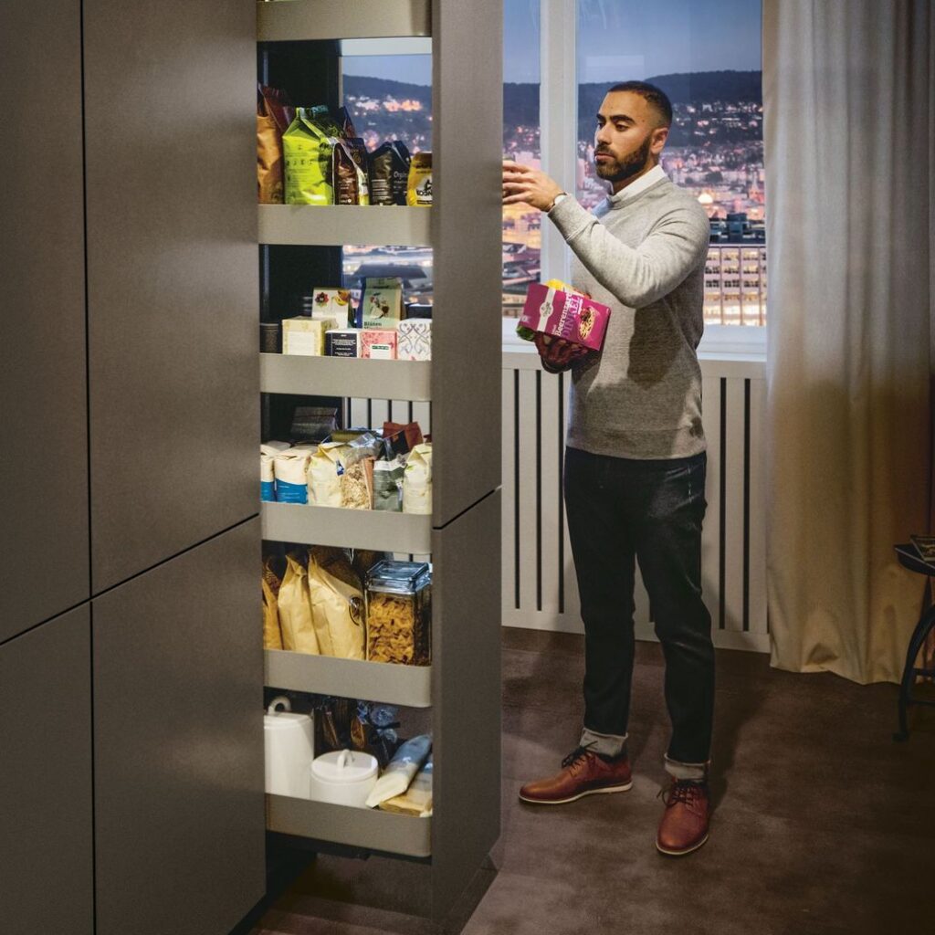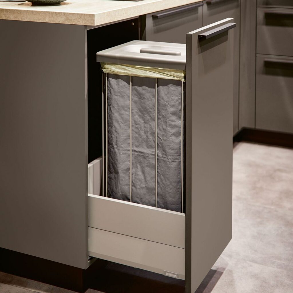 El armario extraíble de cuerpo entero (una maravilla de espacio de almacenamiento) y el mueble bajo fregadero con un moderno sistema de separación de residuos y bolsa de reciclaje. Todos los extraíbles cuentan con el sistema de apertura electrónica C-Drive, que se activa con una ligera presión. Vivir aquí es un verdadero placer.