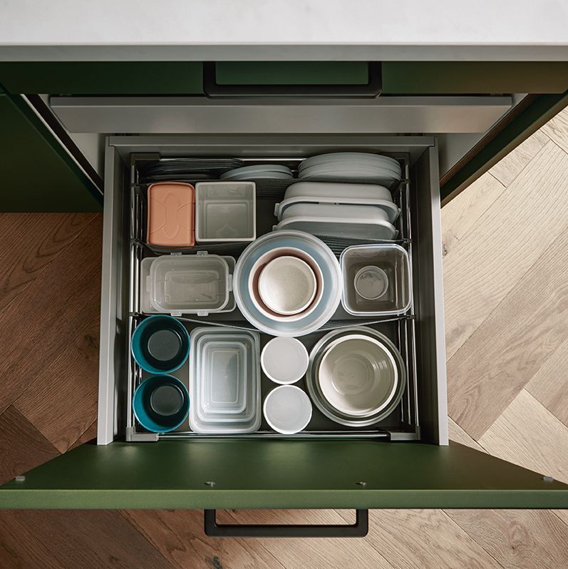 Espacio de almacenamiento ilimitado: gracias a los elementos que van desde el suelo hasta el techo, cada centímetro de la cocina se aprovecha de forma óptima.