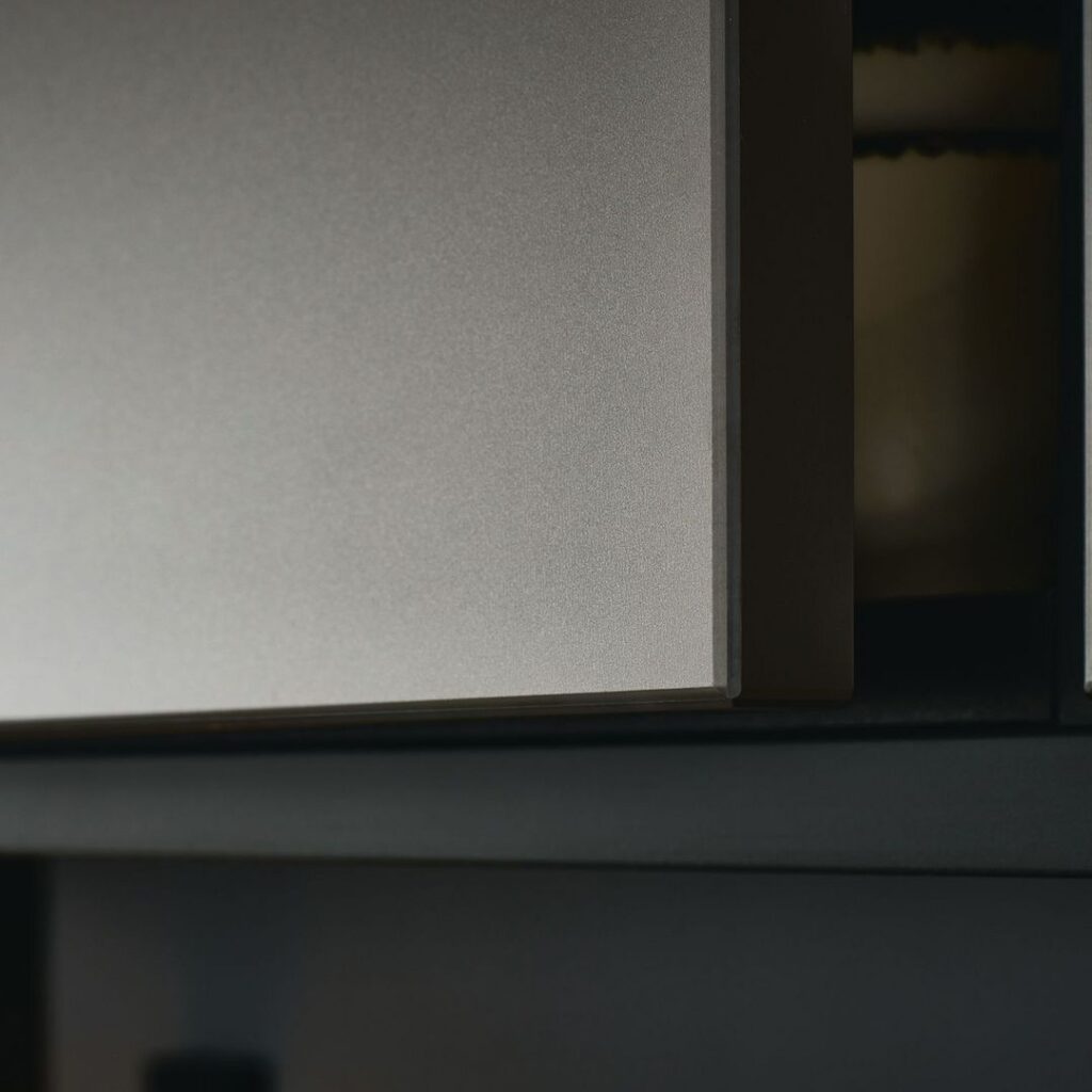 La superficie de vidrio polimérico impresiona por su acabado de alta calidad, que la hace especialmente estable y robusta para el uso diario. La propiedad antihuellas AFP reduce las huellas dactilares, reduciendo considerablemente el esfuerzo de limpieza. Al mismo tiempo, su diseño moderno y aterciopelado invita a tocarlo y a sentir una agradable sensación.