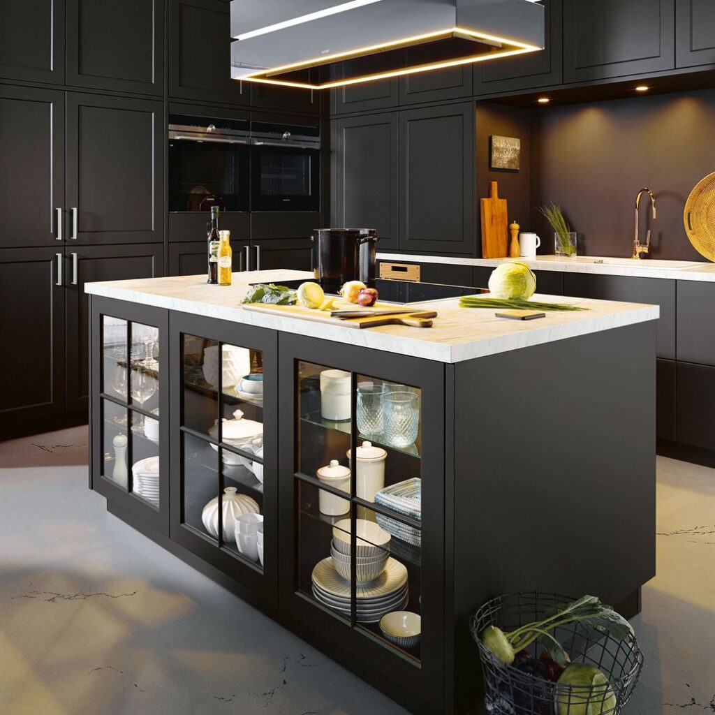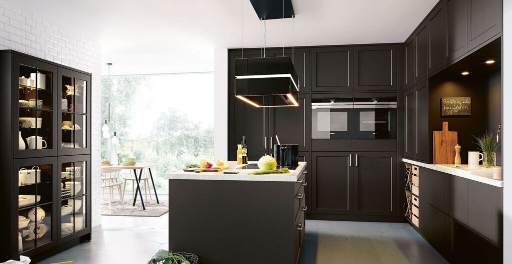 El estilo rústico moderno del modelo Vienna le cautivará con su singular apariencia. Esto se ve acentuado por los frentes oscuros, que armonizan a la perfección con las encimeras de mármol. Estos elementos contrastantes le dan a la cocina un aspecto distintivo.